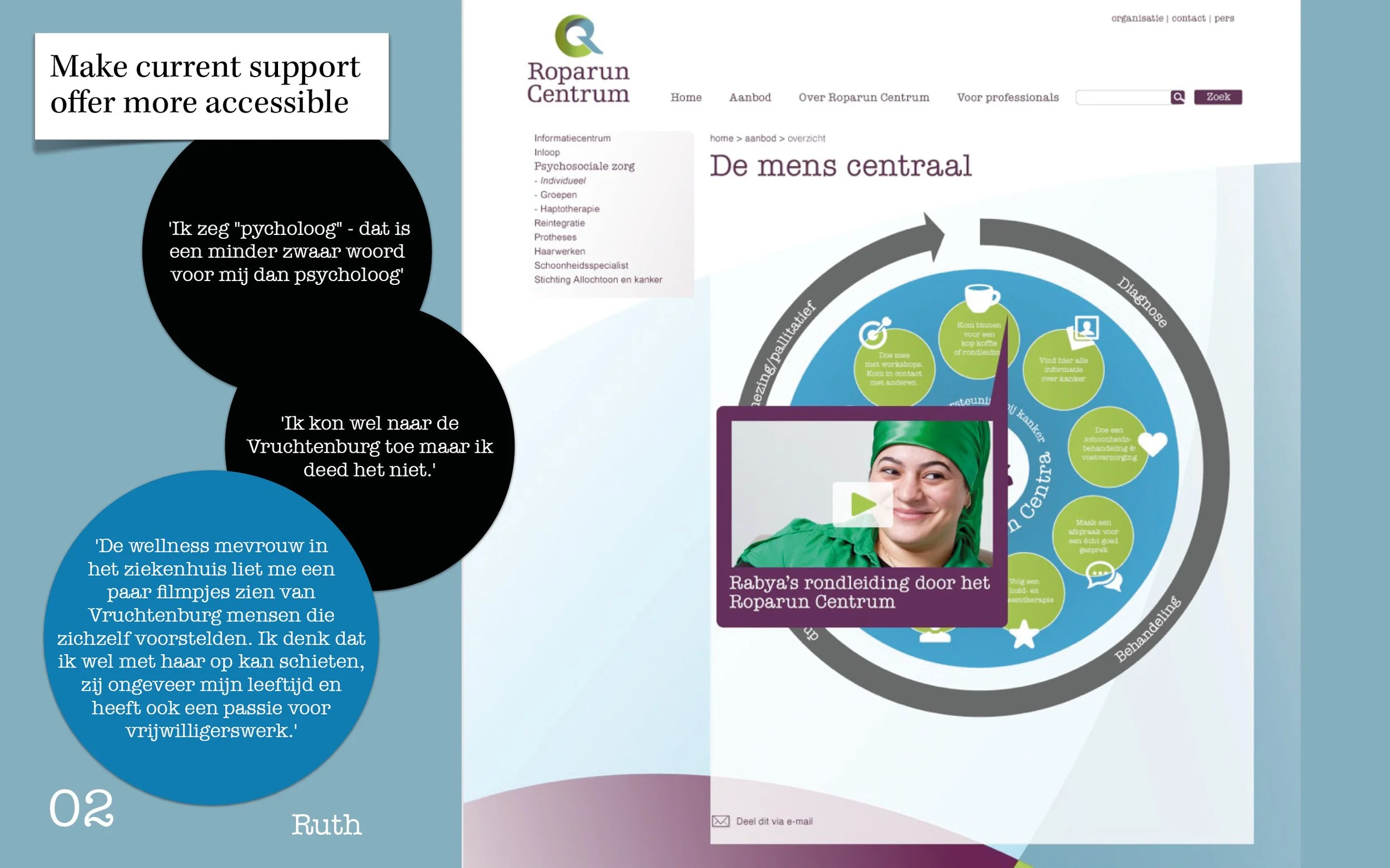 Cancer disrupts lives. It affects health and wellbeing, but also relationships, self-image and work. Roparun Foundation provides psychosocial support through their partners, from therapists to hairdressers. I was asked to map ‘as is’ journeys of people with cancer, find opportunities for service improvement, and embed the methodology.